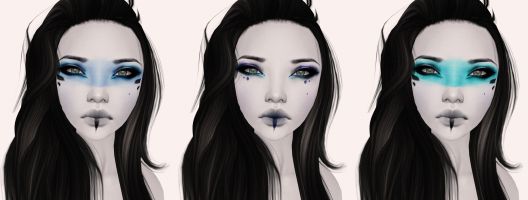 Opal comes with light & dark brows, cleavage, and in two skintones, the original and matte- Matte has less highlights and is a bit darker overall than the original. There are 5 makeups available, and a pure version! All the makeups shown below with the lip stripe have an option without it, for whatever you prefer. <3 Thank you Kae!